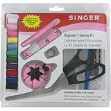 Singer 1512 Beginner's Sewing Kit contains all the basics for sewers and non-sewers alike. Makes a perfect traveling companion or as a child's "My first sewing kit" gift; everything you need to get started. This kit includes one each: tomato pin cushion; 60-inch tape measure; needle threader; blue marking pencil; white marking pencil; sewing gauge; seam ripper; thimble; 8-inch bent trimmer scissors; plus 11 spools of 100% polyester thread; 10 hand needles and 100 straight pins. All 130 pieces come in a reusable storage box measuring 8x7x1 inch. Made in China.